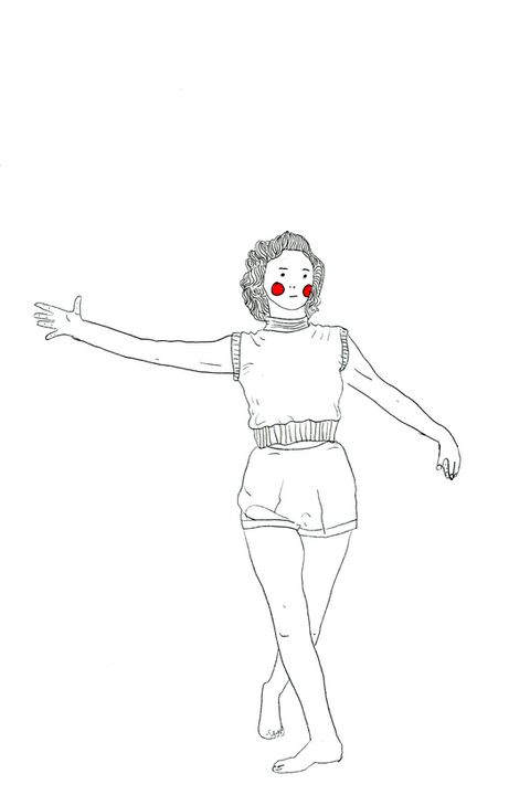 The detailed line (relatively) of the drawing contradicts the abstract agreement of facial features. The detailed line of the body allows me to describe a style of clothing or a scenario that represents the small time, the time counted in decades.